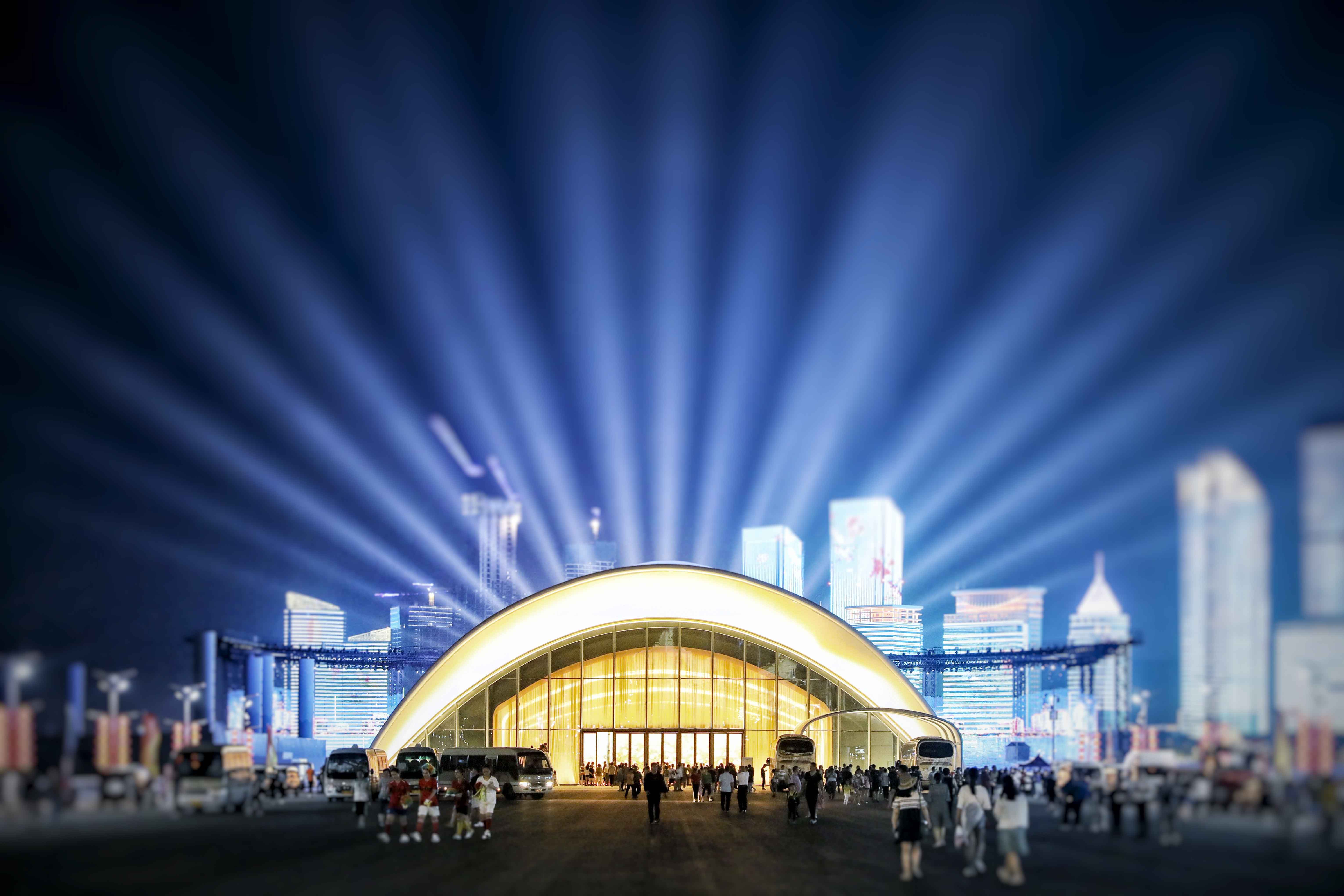 本項目在保留原有建筑主體結(jié)構(gòu)的基礎(chǔ)上,結(jié)合本次會議活動的相關(guān)需求,對其規(guī)模、形象、功能進行改造提升。主題材料采用輕盈的鋼結(jié)構(gòu)與膜結(jié)構(gòu),造型宛如海浪中靈動的風帆,彰顯青島這座海洋名稱、帆船之都的獨特魅力。