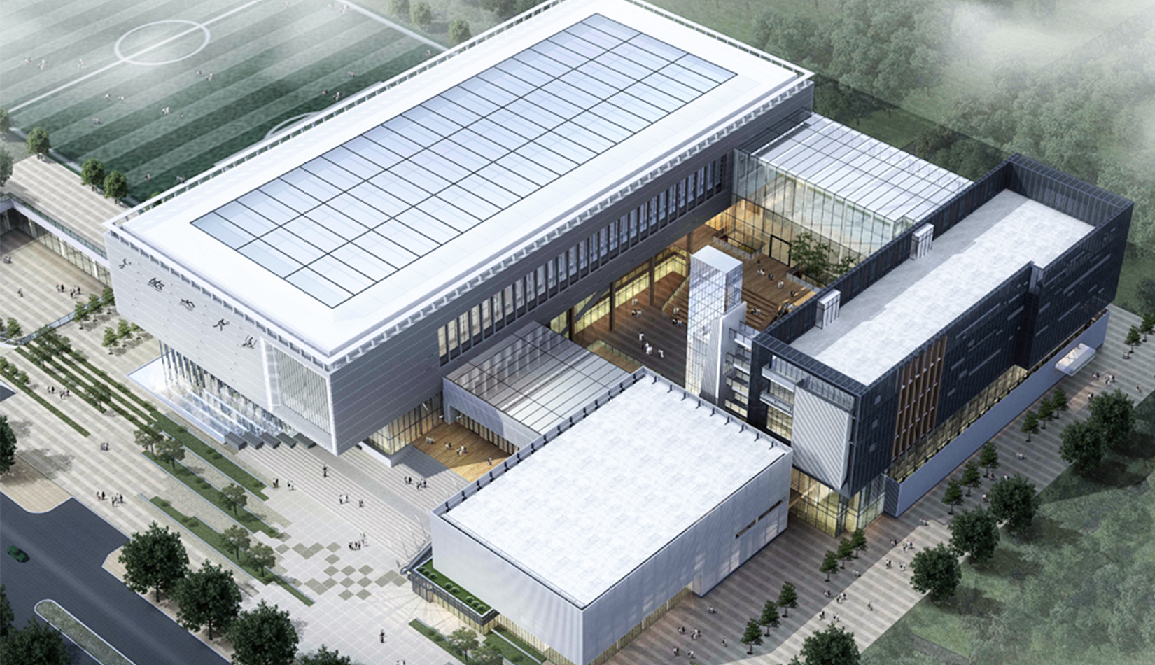 改造舊建筑加以利用,樹(shù)立舊建筑改造升級(jí)的典范尊重場(chǎng)地文化記憶,被改造建筑成為文化的載體,服務(wù)于文化活動(dòng)版塊。與新建體育健身板塊形成“左文右武”的格局。建筑邏輯、景觀邏輯、文化邏輯、新技術(shù)、新材料、立體綠化、生態(tài)空間、景觀與建筑的有機(jī)結(jié)合。