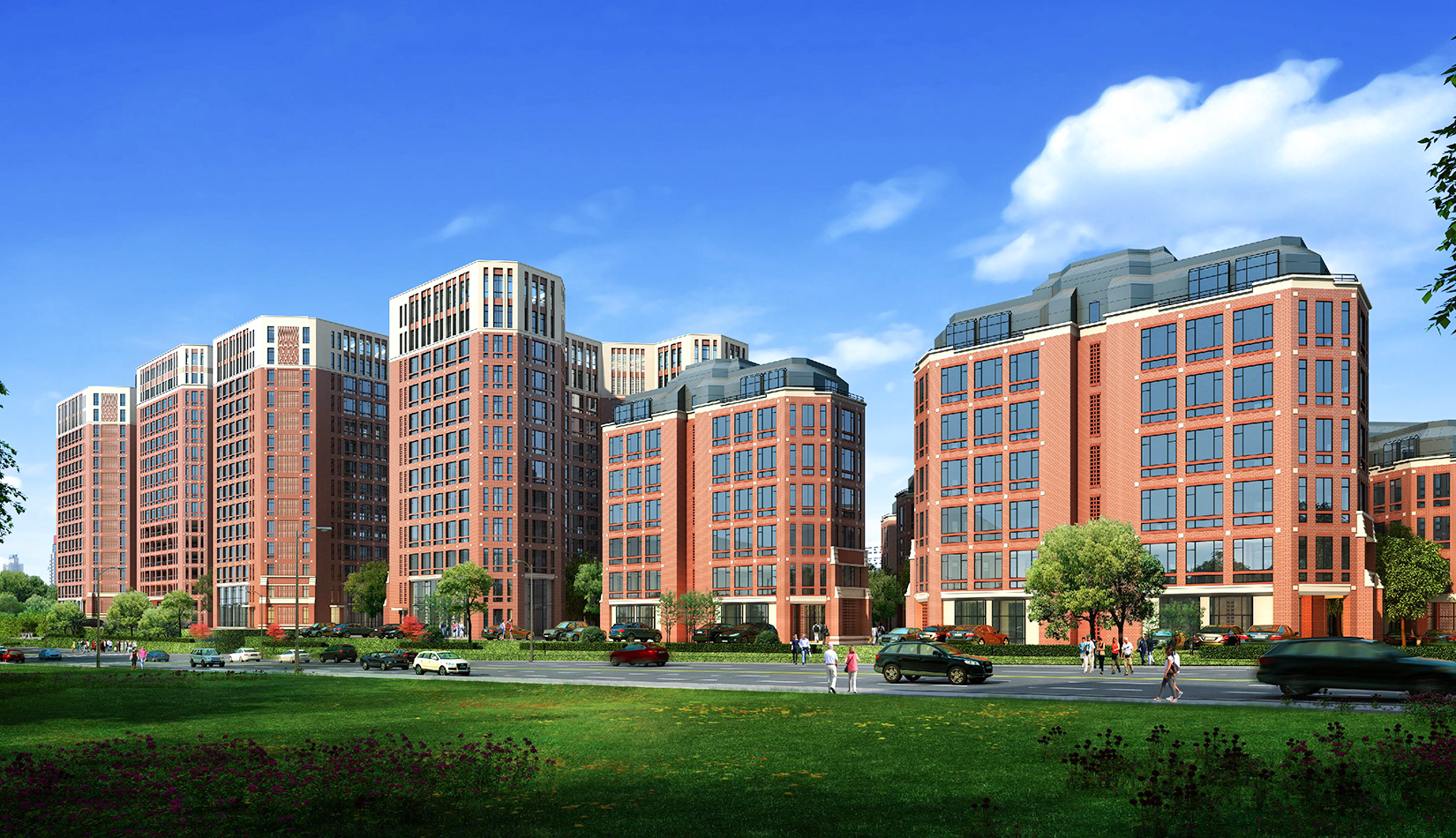該項(xiàng)目規(guī)劃采用傳統(tǒng)規(guī)則式 “十字型” 營造手法,體現(xiàn)井然有序、尺度宜人的空間。