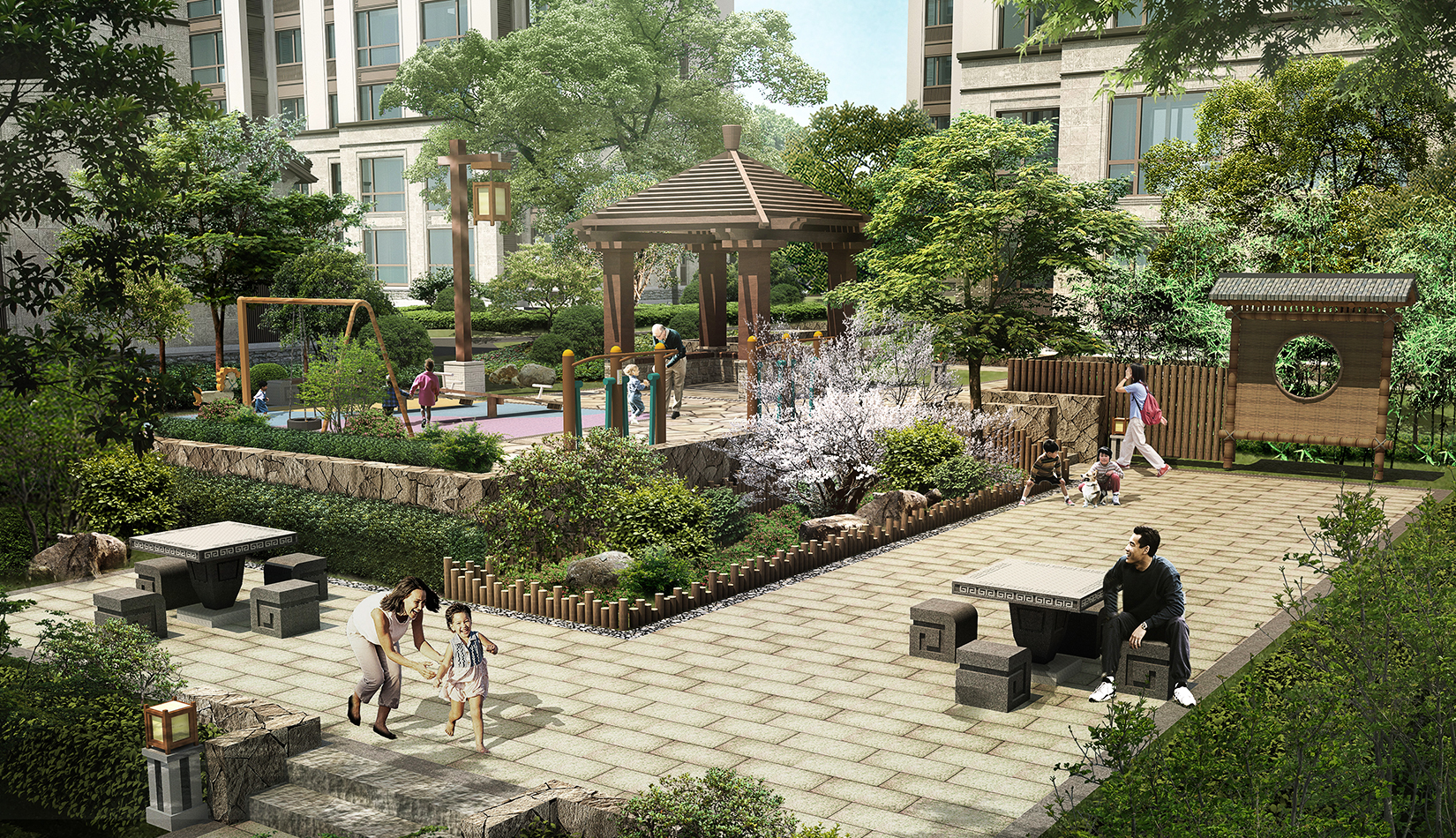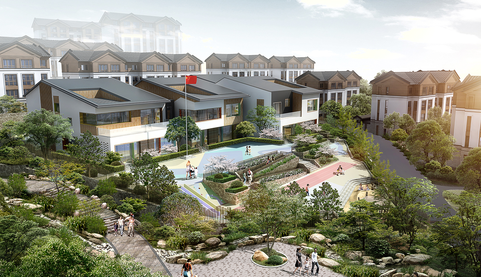 以“鄉(xiāng)村振興” 為背景,以“藏馬山居生活”為目標(biāo)核心,項(xiàng)目把東方田園與住區(qū)生活融為一體、貫穿自然生態(tài)、海綿城市的設(shè)計(jì)理念。景觀設(shè)計(jì)挖掘藏馬山的特色文化,延續(xù)當(dāng)?shù)鼐G色生態(tài)、山野趣味的自然風(fēng)貌,通過場景化的展示,融入到景觀設(shè)計(jì)中,打造特點(diǎn)鮮明、各有特色的入口體驗(yàn)、商業(yè)街區(qū)、山居生活三大板塊。