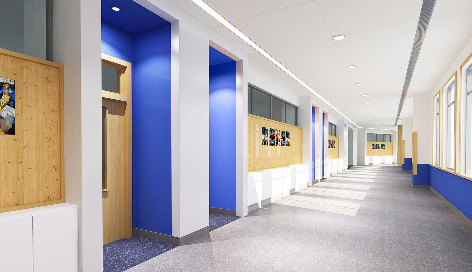 設(shè)計(jì)追求空間設(shè)計(jì)的前瞻性,深入揣摩材質(zhì)、工藝與造型之間的關(guān)系,力圖體現(xiàn)現(xiàn)代化小學(xué)空間輪廓;設(shè)計(jì)堅(jiān)持以“人”為本的校訓(xùn),強(qiáng)調(diào)人性化設(shè)計(jì),因此注重生態(tài)、綠色、節(jié)能、環(huán)保、文化空間功能,輔以材質(zhì)、色彩的表達(dá),為寧夏路小學(xué)營(yíng)造出了人性的、功能的、標(biāo)志化效果,為孩子創(chuàng)造-一個(gè)良好的視覺(jué)環(huán)境和心理健康發(fā)展的氛圍。