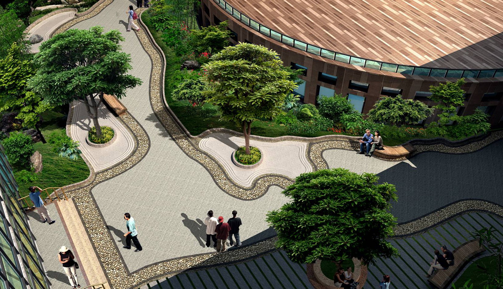 以鳳凰為設(shè)計思想來源,建筑為骨,環(huán)境為翎,合理組織前廣場的空間結(jié)構(gòu)。