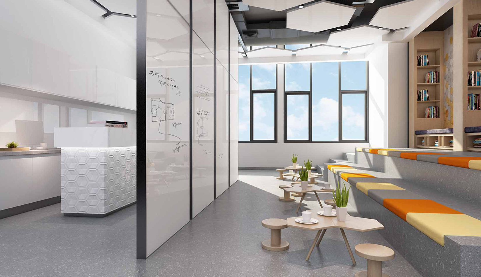 前臺營造一種開放式的交流空間,為入住者提供一個充滿活力的社交空間、資源共享空間、閱讀空間,包括水吧、讓你放松的圖書館,還可承辦各種活動,時尚的設(shè)計(jì)以及獨(dú)特的個性,便于大家面對面溝通和社交體驗(yàn)。
