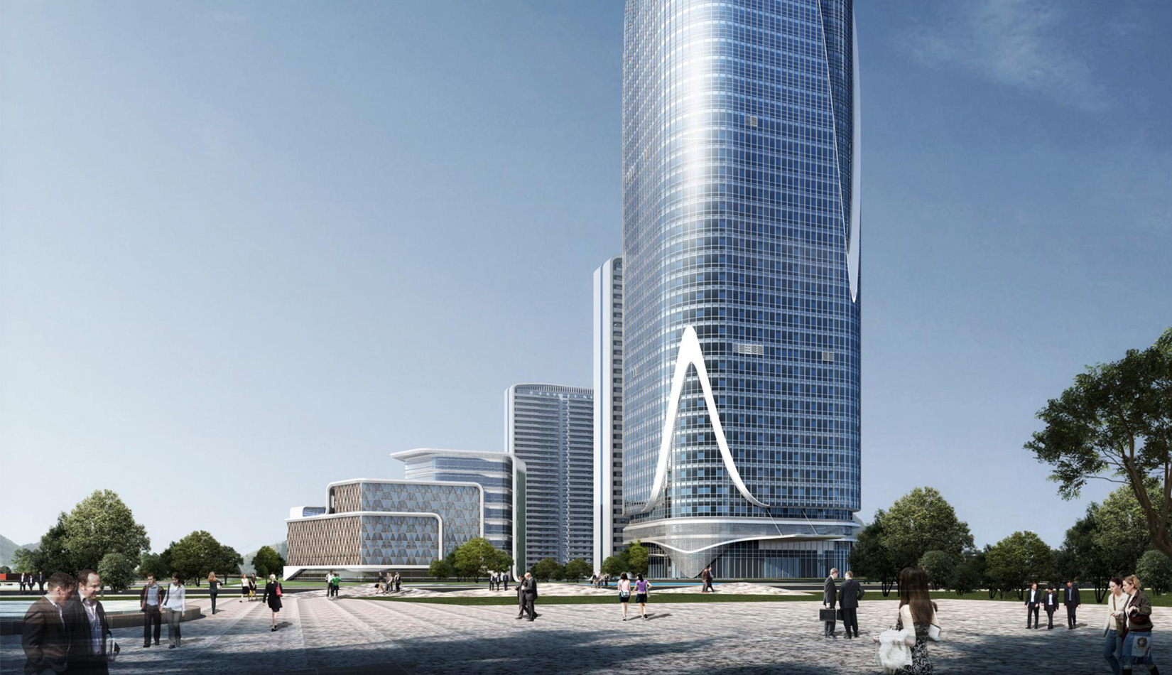 院士港二期1#樓為超高層工程技術(shù)中心,建筑采用現(xiàn)代風(fēng)格立面,以玻璃幕墻為主,利用豎向線條體現(xiàn)高山流水設(shè)計(jì)理念。